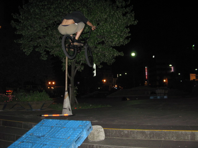 画像は24に拘るシゲ。バニーホップで入ってマニュアルで捲くれるのを期待するも危なげなくメイク。最近は縁石やバンク、ウォールとストリートでも少しずつ乗るようになってきたので自信が付けば一皮剥けそう。bmx、mtb関係なくやる気のないやつを蹴散らして刺激を与えて欲しいとこ。ストリートでモッサリした動きはかなり不利、一刻も早くリジットフォークを