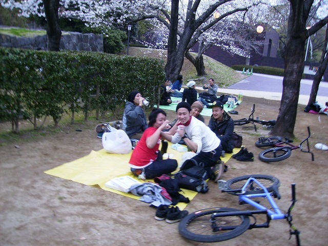 bmx,mtb,sk8と混じって楽しい花見。つまみは手作りが多くて今までにはない感じが良かった。ブラジルの謎の酒にやられたけど。あまり覚えてなくて書きようがないけど楽しかった。初参戦のk君がいたのも効いて飲みすぎた。暖かくなってきたし桜が散るまでにもう一度くらいあるとおもしろいけど