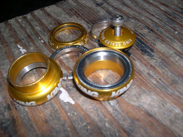 CHRIS KINGのFAKEです。オリジナルと比べると見た目は明らかに劣っていますがアイディアはなかなか。オリジナルはカップとベアリングが一体型になってますがFAKEは独立しているのでバラしてのメンテが可能。そして上玉圧しもキャップと玉圧しが独立したことで衝撃を逃がすことができよりハードに使うことができます。S君の話によると知り合いのショップに現物があるとか。。solidもそういう話があったけどどうなんだろFAKE