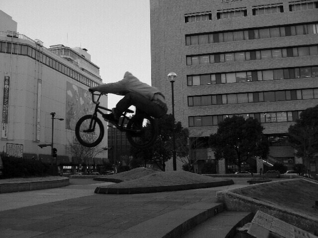 ワイドバーにベタ下げのスリムシート、流行の!?setupで遊びに来てくれたJ君。乗り方も辛島公園では見ない今どきな感じ、怪我をしていたのが残念だったけど。個人的にワイドバーは見た目、バランスが非常に悪くとても組む気になれません。お世辞でもかっこいいとは言えないし。bmx、特に街乗りなら見た目は大切でしょ。J君怪我治してまた遊びに来てね
