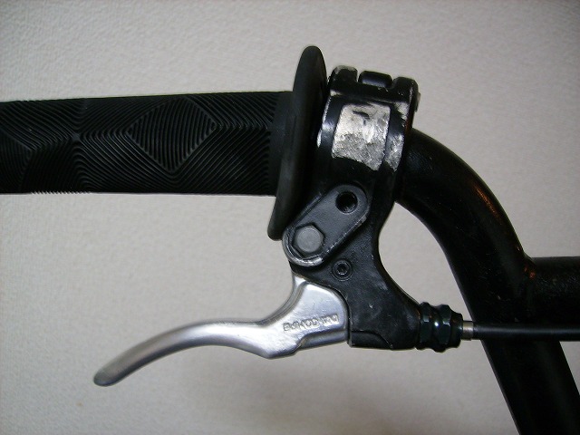 普段の移動や買い物にはブレーキを組んだbmxを使っていますがそのブレーキも流行のモノは組まずにレバーはTECH77、ブレーキは996と昔貰ったものに手を入れて使ってます。このレバーは曲げ、削りは勿論よく親指をぶつけるクランプ部分のネジをODYSSEYの皿ネジに替えてあります。最近はブレーキもいいのがいくつか出てますがそこはこだわりで