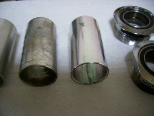右がT-1 Barcode用で中央は以前FIT S2に組んでたやつ。BarcodeはBB幅が気持ち狭かったのでスペーサーをカットしてピッタリに。問題はS2、この他にFITから出ているEuroBBkitもありますが付属してるスペーサーはクロモリ製で重くサイズも少し大きい。写真中央のスペーサーは幅が1㎜程短く組み付けるとクランクの回りが渋い。ということで近々地味な作業をすることになりそうです