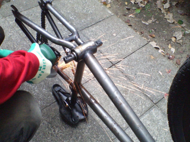 マウントはグラインダーと鑢で、トップチューブのガイドは金ノコと鑢で
