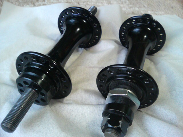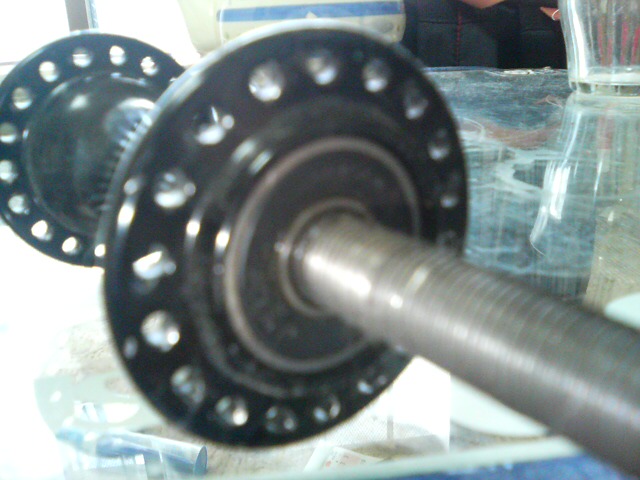ちっと前からいじってたハブがいつでも組める状態に仕上がった。っていってもバラしてベアリング洗ったりシャフトをチョップしたりオイル試してみたりだったんだけどね